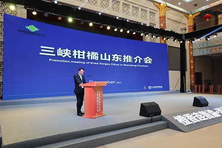 2021年12月10日,由重慶市商務委、山東省商務廳、重慶市鄉村振興局、山東省協作重慶干部管理組共同主辦的“重慶柑橘進山東專場推介活動”在濟南南郊賓館藍色大廳盛大開幕。本次推介會從2021年12月10至2021年12月14日,依次在淄博市博發果品批發市場、青島市東方鼎信國際農副產品交易中心等分會場進行宣傳推廣活動。